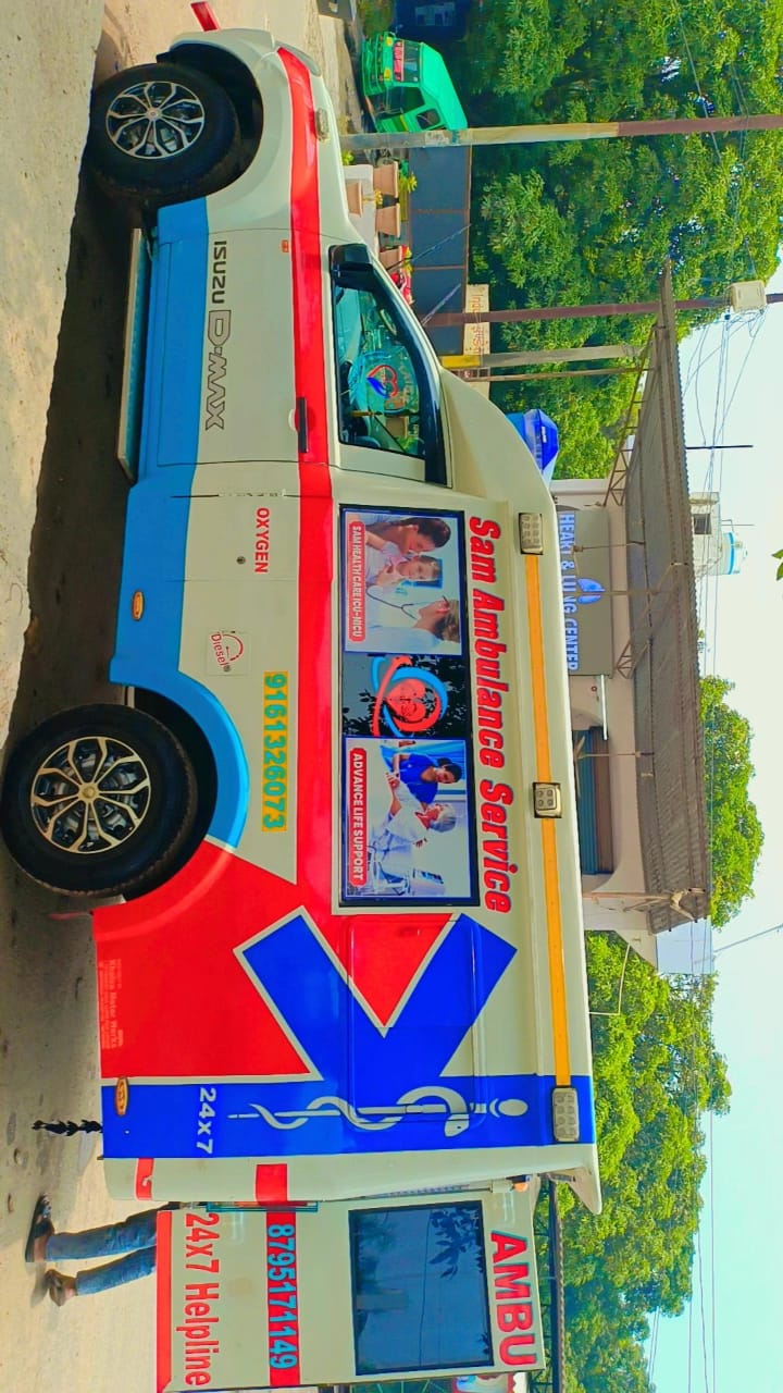 SAM HEALTH AMBULANCE SERVICE is dedicated to providing fast, reliable, and professional emergency medical transportation services. Our mission is to ensure safe and timely patient transfer with the highest level of care and compassion. We offer fully equipped ambulances including AC ventilator support, oxygen facilities, and freezer ambulance services to meet critical and non-critical medical needs. Our trained staff and drivers are available 24x7 to respond quickly in emergencies, ensuring patients receive immediate attention and safe transportation. At SAM AMBULANCE SERVICE, patient safety, comfort, and prompt response are our top priorities. We are committed to serving the community with dependable ambulance support whenever it is needed.